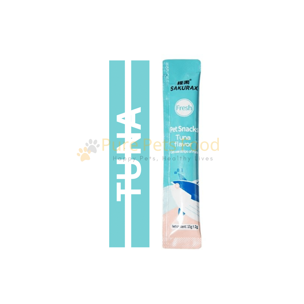 SAKURAX Pet Shacks Creamy Cat Treat – Tuna Flavor 15g is a premium snack made with high-quality tuna, free from artificial additives, perfect for rewarding and treating cats of all breeds and ages.