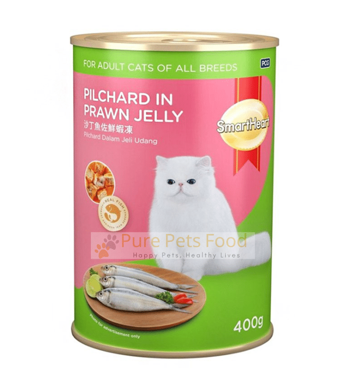 - Treat your feline friend to the irresistible flavors and balanced nutrition of SmartHeart Pilchard in Prawn Jelly Canned Food.